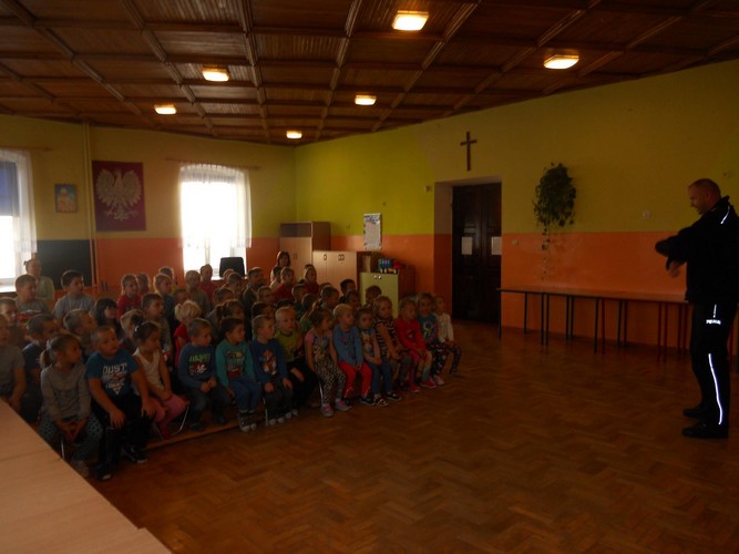 24 września uczniowie z oddziałów przedszkolnych, klas I-III oraz klas IV-VI uczestniczyli w spotkaniu z Policjantem z Posterunku Policji w Dobrzyniu nad Wisłą starszym sierżantem Panem Pawłem Impert. Dzieci miały okazję porozmawiać z policjantem o zachowaniu bezpieczeństwa w drodze do szkoły i poza szkołą. Policjant omówił zasady poruszania się po ulicy, chodniku i podczas jazdy rowerem. Organizatorem spotkania była p. S. Żabielska.