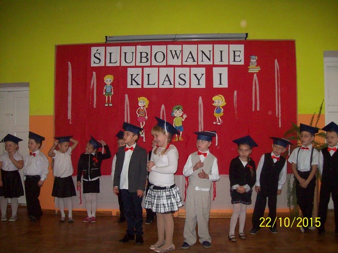 Dzieci zaprezentowały część artystyczną, którą przygotowały razem z wychowawcą klasy panią Iloną Trojanowską. Recytowały piękne wiersze o szkole oraz o Pani Dyrektor, śpiewały piosenkę pt. „Jestem Polakiem”. Wszyscy uczniowie klasy I tego dnia wyglądali przepięknie, każdy chłopiec miał czerwoną muchę, a dziewczynki czerwone kokardki na włosach zaplecionych w dwa warkoczyki. Dzieci złożyły przysięgę, a Pani Dyrektor dokonała pasowania na ucznia Szkoły Podstawowej im. Jana Pawła II w Czarnem, wręczyła dzieciom dyplomy oraz legitymacje szkolne. Dzieci otrzymały prezenty od Samorządu Uczniowskiego i Rady Rodziców. Niespodzianką były upominki od KDBS O/Wielgie.