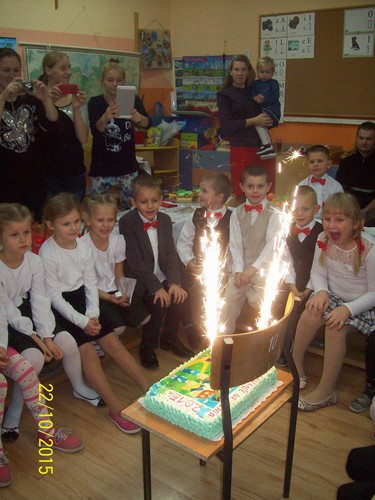 Po części oficjalnej uczniowie wraz z rodzicami, udali się do swojej klasy. Wśród wielu słodkości największą atrakcją był pięknie udekorowany tort.