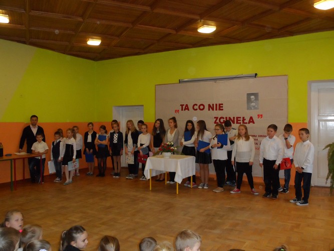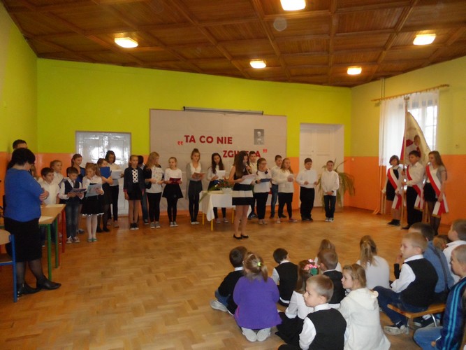 9 listopada 2015r. w naszej szkole odbył się uroczysty apel poświęcony 97 rocznicy odzyskania przez Polskę niepodległości. Uczniowie z klas IV-VI pod kierunkiem p. Aliny Śliwińskiej przygotowali prawdziwą lekcję historii i patriotyzmu. Całość dopełnił śpiew zespołu wokalnego prowadzony przez p. Jarosława Jeżewskiego.