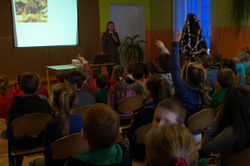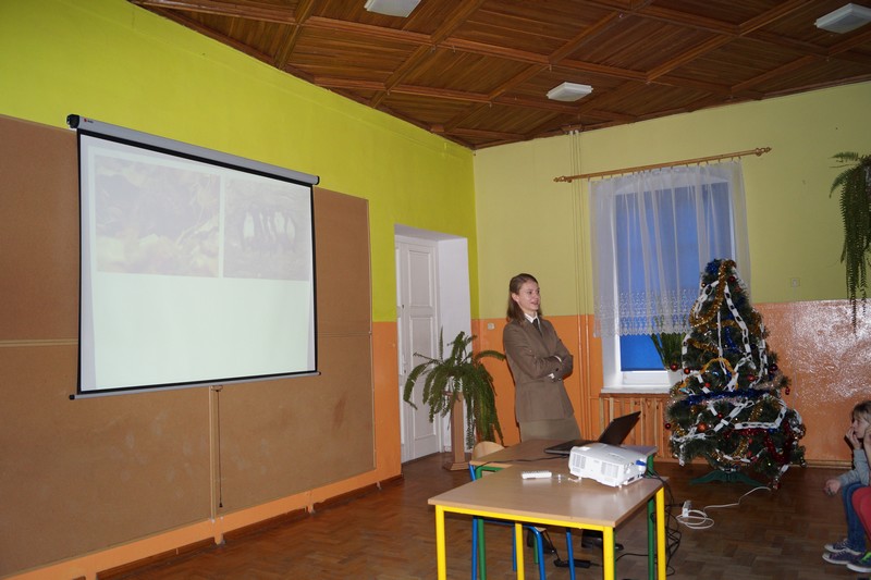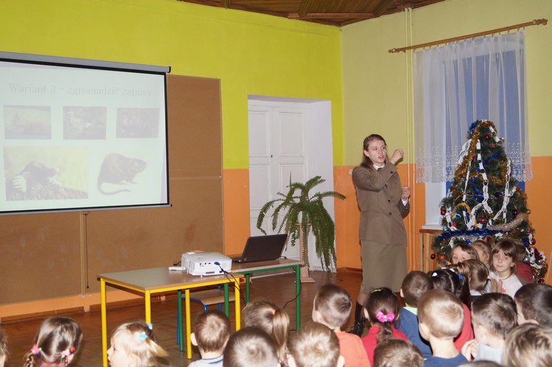 18 grudnia 2016r. odwiedziła naszą szkołę Pani Podleśniczy mgr inż. Agnieszka Budzińska. Przedstawiła uczniom prezentację multimedialną, opowiadając jak zwierzęta i rośliny przygotowują się do zimy, oraz w jaki sposób ludzie mogą w tych przygotowaniach im pomóc.