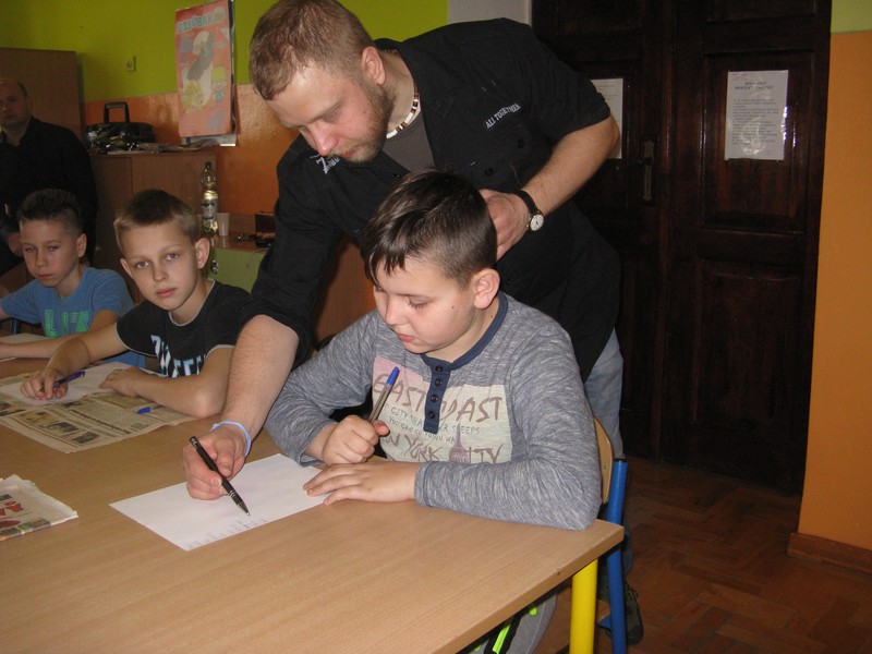Członkowie Dyskusyjnego Klubu Książki i uczniowie kl. VI uczestniczyli w warsztatach detektywistyczno-dziennikarskich, które przeprowadził dziennikarz, a zarazem autor kryminałów - pan Krzysztof Koziołek. Spotkanie rozpoczęło się w bibliotece od kryminalnej zabawy w detektywa. Następnie grupa przeniosła się na świetlicę w szkole w Czarnem i tam rozpoczęły się warsztaty dziennikarskie. Uczniowie dowiedzieli się, na czym polega praca dziennikarza i jak tworzyć ciekawe teksty przyciągające uwagę czytelników. Uczestnicy warsztatów, po kilku wskazówkach autora, mieli za zadanie stworzyć tytuł, nagłówek oraz artykuł, który przyciągnie uwagę. Zadanie to uświadomiło niektórym uczestnikom, że mają talent w tworzeniu świetnych tekstów, co zauważył sam Pan Krzysztof Koziołek.
