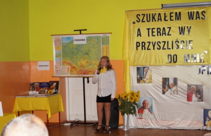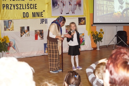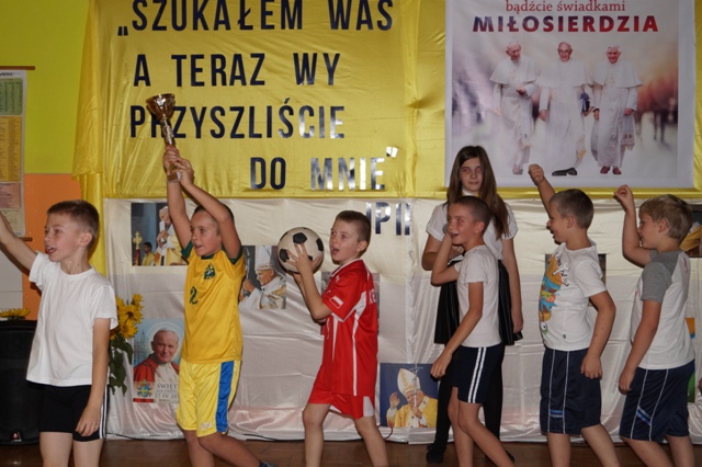 Uczniowie klas I-VI w montażu słowno-muzycznym przypomnieli nam postać Świętego Jana Pawła II. Usłyszeliśmy słowa papieża skierowane do młodych. Tegoroczne hasło Światowych Dni Młodzieży odbywających się w Krakowie: