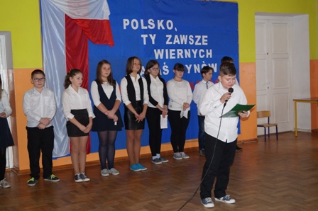 Uczniowie z klas IV-VI pod kierunkiem p. Aliny Śliwińskiej i p. Jarosława Jeżewskiego przygotowali prawdziwą lekcję historii i patriotyzmu.