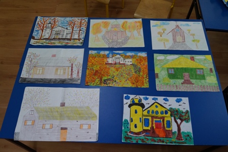Tematem przewodnim konkursu były barwy jesieni z zaleceniem, aby przedstawione prace zawierały element architektoniczny np. zabytek charakterystyczny dla danej miejscowości czy regionu. W pracach uczniów ujrzeć mogliśmy przede wszystkim piękny, zabytkowy pałac w którym mieści się nasza szkoła oraz drewniany zabytkowy kościół.