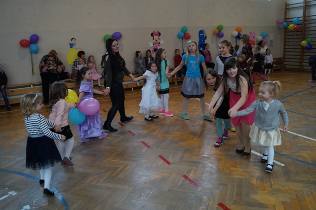 26 stycznia 2017 roku był bardzo radosnym dniem w naszej szkole. Po obejrzeniu Jasełek i złożeniu życzeń babciom i dziadkom uczniowie udali się do sali gimnastycznej na zabawę choinkową. Dyskotekowe rytmy porwały wszystkich do tańca. Największą niespodziankę sprawił Mikołaj, który obdarował dzieci słodkimi upominkami. Wspaniałej zabawie, pełnej uśmiechu towarzyszyli rodzice. Pomagali w organizacji, przygotowaniu loterii i sklepiku. Dodatkowej radości dodawał fakt, że od poniedziałku FERIE!!! Tak wspaniała zabawa została organizowana przez Radę Rodziców pod przewodnictwem pani Katarzyny Kowalskiej.