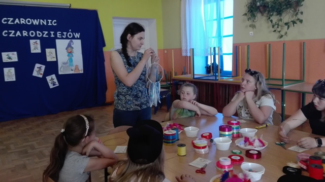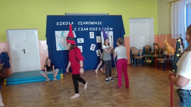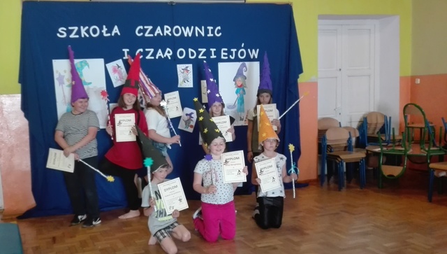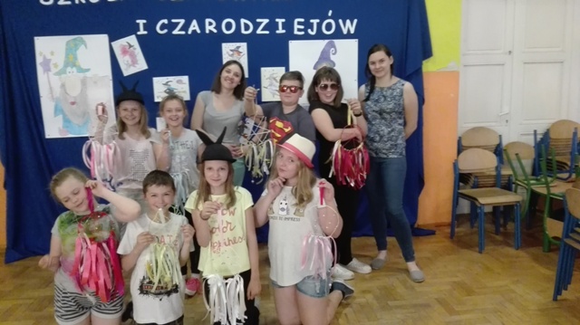 Członkowie Dyskusyjnego Klubu Książki, spotkali się 19 maja w Szkole Podstawowej im. Jana Pawła II w Czarnem, żeby przeżyć noc pełną przygód. W tym roku nocleg przebiegał pod hasłem: „ Szkoła czarownic i czarodziejów”. Podczas dwudniowego spotkania uczestnicy, pod czujnym okiem opiekunów: Moniki Trzeciakowskiej i Justyny Baranowicz, brali udział w różnych zadaniach, grach i zajęciach mających na celu dobrą zabawę, wypoczynek i integrację grupy. Dzieci bardzo aktywnie i twórczo uczestniczyły w noclegu. Cała zabawa rozpoczęła się od podziału uczestników na dwie grupy –Czarodziejów i Czarownic. Obie grypy ozdobiły sale, a następnie brały udział w warsztatach plastycznych pod okiem p. Weroniki Sieradzkiej. Wszyscy uczestnicy wzięli również udział w grze terenowej. Biegając wokół szkoły wg wskazówek rozwiązywali przygotowane zadania. Uwieńczeniem spotkania było wręczenie pamiątkowego dyplomu.