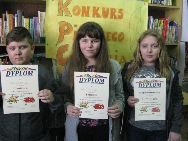 Naszą szkołę reprezentowali: Julia Chojnacka, Kinga Joanna Kwiatkowska i Piotr Grudziński, którzy wygrali eliminacje klasowe i szkolne.