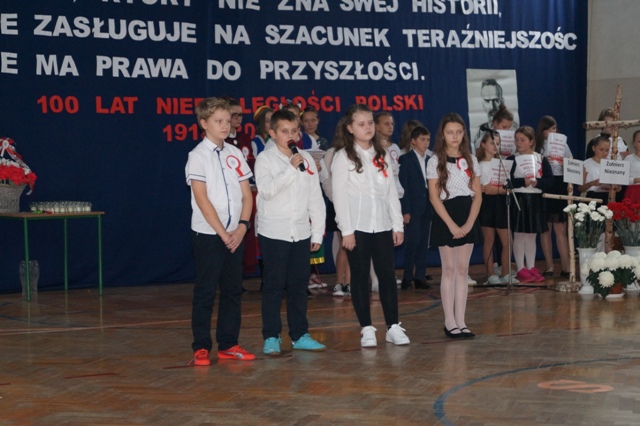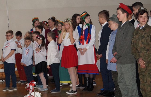 „Rekord dla Niepodległej”, śpiewając o 11.11 cztery zwrotki hymnu narodowego. W montażu słowno-muzycznym przypomniane zostały wydarzenia historyczne, które doprowadziły nasz kraj do niepodległości. Szacunek, przywiązanie do symboli narodowych zaprezentowane zostały poprzez śpiew i taniec.