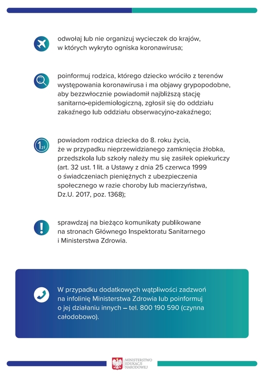 na infolinię Ministerstwa Zdrowia lub poinformować